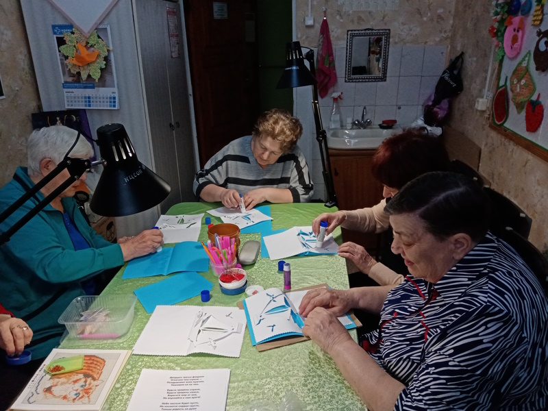 Цель данной терапии: восстановление мелкой моторики рук, творческих навыков, усидчивости, развитие фантазии, образного и пространственного мышления, аккуратности и внимательности. Техника киригами – легкий и интересный вид творчества, складывание разнообразных фигурок из бумаги с использованием ножниц и клея. В процессе творчества пожилые люди познакомились с новой интересной техникой работы с бумагой и создали открытки со складной внутренней частью, при раскрытии которой, она приобретает объем, превращаясь в фигурную композицию. Праздничные открытки с самыми добрыми пожеланиями будут вручены мужчинам, отдыхающим в отделении дневного пребывания, накануне 23 февраля.