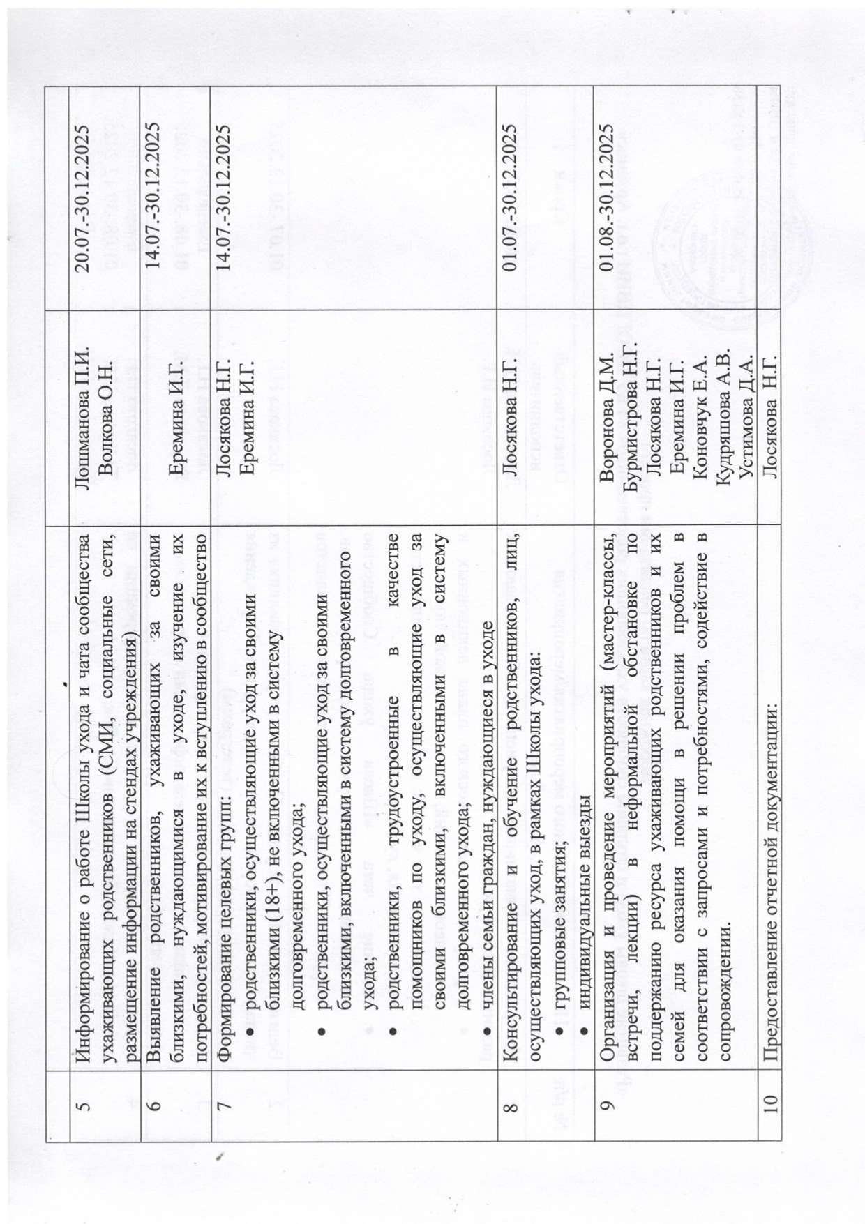 Дорожная карта по реализации проекта Развитие школы ухода и создание сообществ ухаживающих родственников в ГБУ ЦСОГПВИИ г.о.г.Арзамас