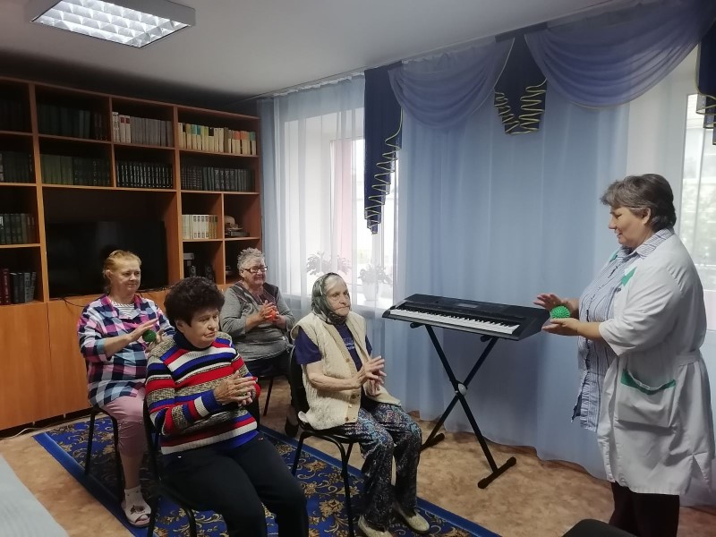 В отделении «Специализированный жилой дом для граждан пожилого возраста и иинвалидов» состоялся фитнес- час «На зарядку становись», где фельдшер отделения Беляева М.И. познакомила пожилых людей с дыхательной гимнастикой А.Н.Стрельниковой и провела комплекс упражнений. Дыхательная гимнастика А.Н.Стрельниковой перестраивает стереотип дыхательных движений, восстанавливает не только сократительную способность и пластичность мышц, участвующих в дыхании и фонации, но и укрепляет весь опорно-двигательный аппарат в целом. Упражнения Стрельниковской дыхательной гимнастики, активно включая в работу все части тела - руки, ноги, голову, тазовый пояс, брюшной пресс, плечевой пояс и т.д., снижают мышечный гипертонус, ликвидируют различные неврозы, оздоравливают психику.