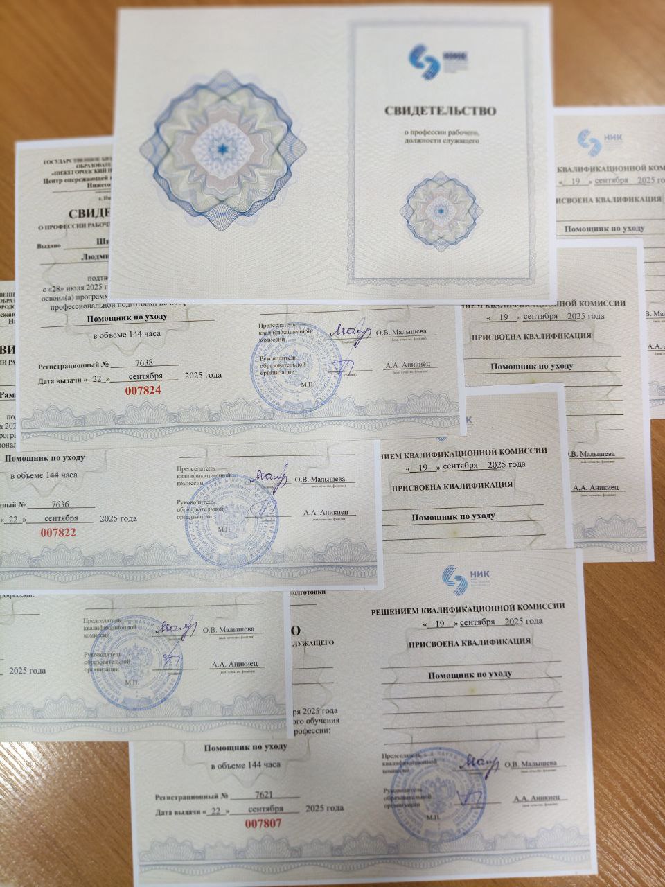 В нашем Центре 8 социальных работников прошли профессиональное обучение в ГБПОУ «Нижегородский индустриальный колледж» в рамках федерального проекта «Активные меры содействия занятости», присвоена квалификация «Помощник по уходу».